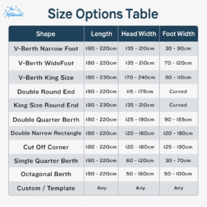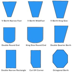1. Select Your Closest Size/Option : Choose the option that most closely resembles your boat’s bed or select a custom size option. (Note: Your fitted sheet will be custom-shaped, but your top sheet will be rectangular and sized to fit your mattress dimensions).