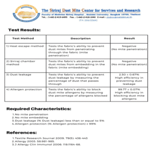 Dust mite resistant (certified by Siriraj Hospital, Mahidol University)
