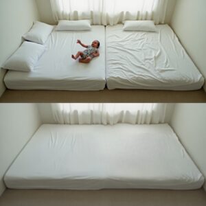 - Cover both mattresses and the BedBridge with your Mildmate 360° elastic bedsheet.