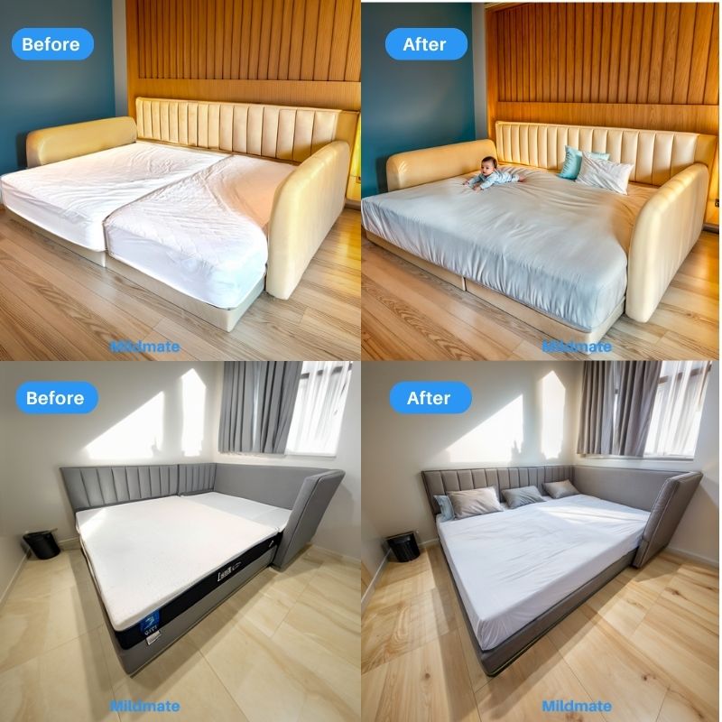 - ✨ Seamless and secure – no straps required! Unlike traditional bedbridges that rely on cumbersome straps, our innovative Mildmate BedBridge works with the Mildmate 360° Elastic Bed Sheet (sold separately). This unique combination ensures a secure fit that prevents the mattress from sliding apart, providing a truly seamless and stable sleep surface without the hassle of straps.